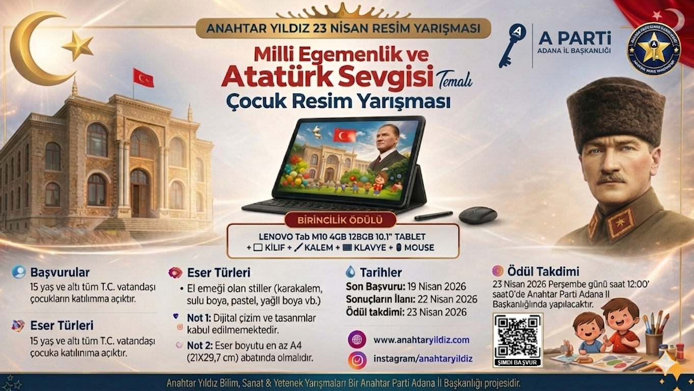 Anahtar Parti Adana İl Başkanlığı olarak, 23 Nisan Ulusal Egemenlik ve Çocuk Bayramı coşkusunu sanatla taçlandırıyoruz.